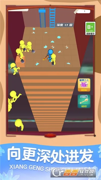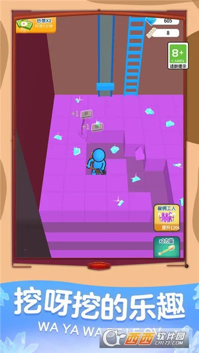 挖呀挖呀挖是一款以挖矿为主题的闲置游戏。玩家要用工具从地下挖宝石财宝等资源,克服障碍挑战,集点升级解锁工具能力,还能雇佣员工,玩法简单有趣,有多种特色玩法与丰富奖励。