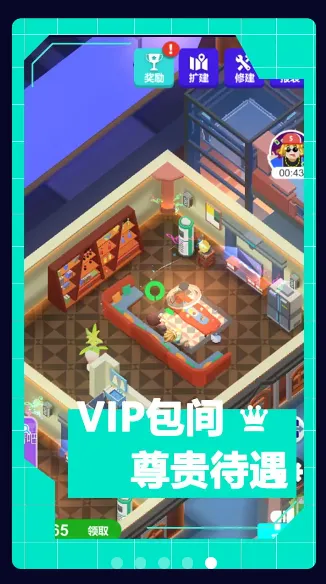 3. 指尖微操,可选择多变风格,化身酒吧老板,持续招募更多职工,修建全新设备,储备大量福利活动,吸引更多消费者前来。