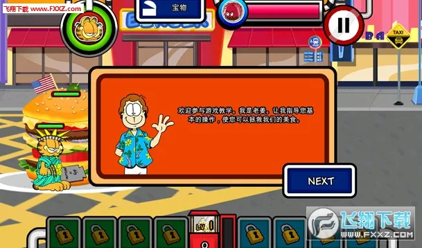 2. 操作方式简单易上手,类似暴力板砖,点击屏幕左右控制加菲猫移动,点击技能图标就能进行召唤伙伴、释放技能、升级等级等操作,玩家可按策略合理分配。
