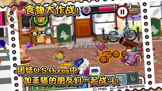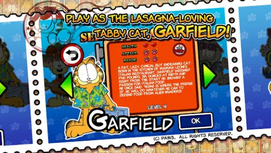 加菲猫总动员2是策略塔防游戏,以经典动画为题材。有外星入侵背景,众多角色和丰富关卡。操作简单,可触屏移动、释放技能。能招募伙伴、升级角色,在防守进攻中展示指挥能力,体验击退敌人的乐趣