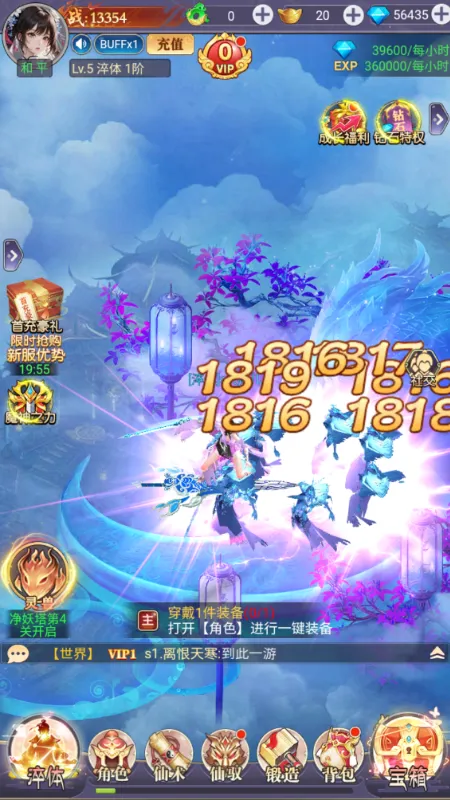 4. **战斗轻松简单**:放置挂机可自动打怪升级,难度较小,玩家也可越级挑战,随着等级提升副本难度增大。