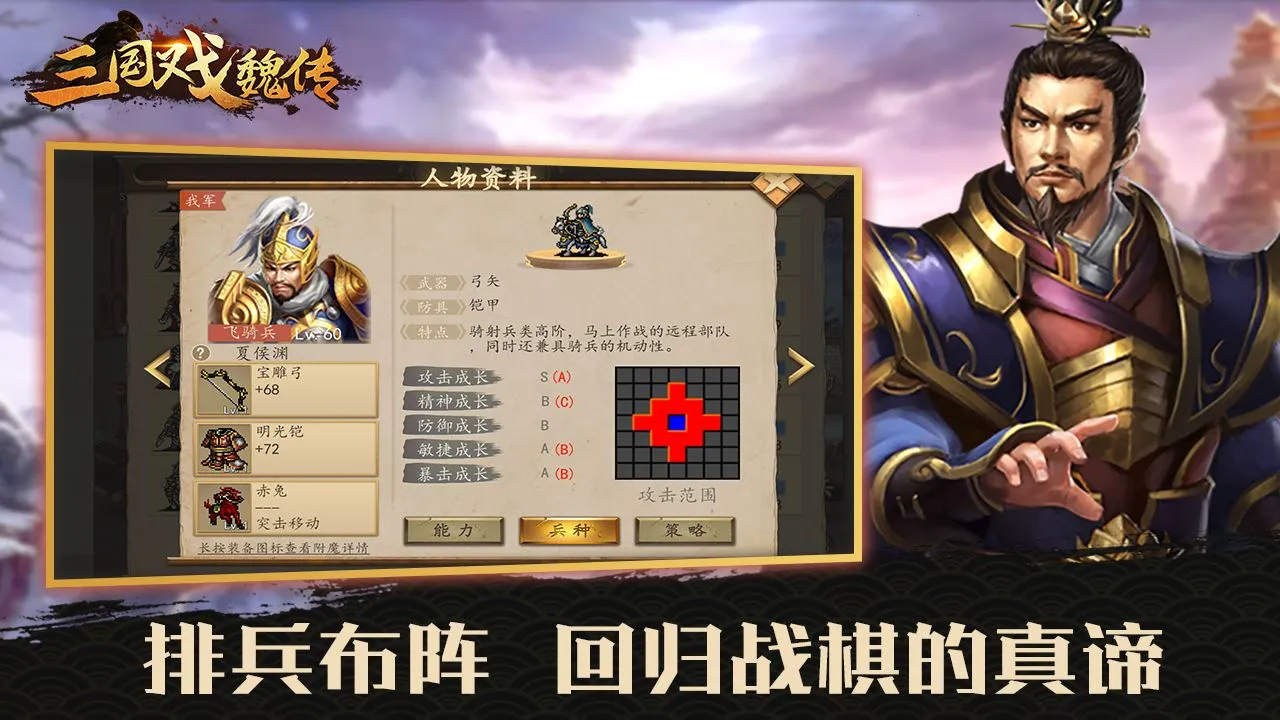 想在《三国戏魏传》里轻松通关1到66关?这里有不少实用技巧。游戏里武将培养很关键,零氪玩家推荐先培养关羽,他自带提升士力和攻击力特性,还有攻击与士气转换能力,白板状态就很适合新手。充值玩家可优先考虑许褚或吕布,许褚二阶自带破盾技能,输出可观;吕布技能强力,属性面板出色。战斗中要运用智慧掌控全局,三国战场变化快,得抓住瞬息即逝的战机。不止魏蜀吴争斗,多方诸侯势力崛起,合纵连横有无限可能。众多经典战役重现,可与好友一同探索地图、招募将领、寻找宝藏。游戏提供多种精锐兵种,像青州军、虎贲军等供你调遣。合理排兵布阵,利用兵种特点和武将技能,相信你能顺利通关,书写属于自己的三国传奇。
