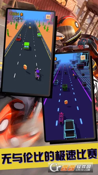 3. 公路上多样化的道具等你收集,让飙车更加刺激。