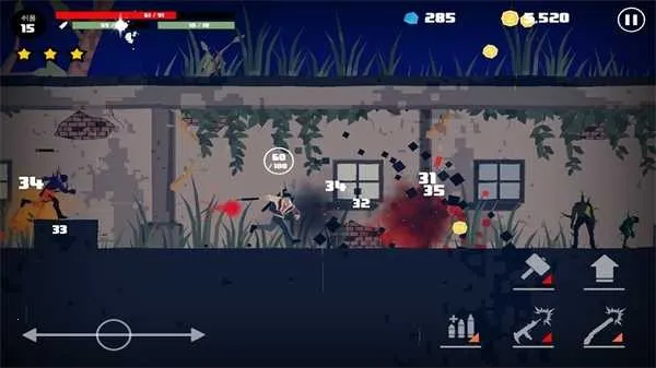 1. 操作体验:简单滑动和点击屏幕就能控制角色对战,左侧控制左右移动,右侧是攻击和跳跃按钮,高度自由,可跳跃射击,走位激战BOSS。