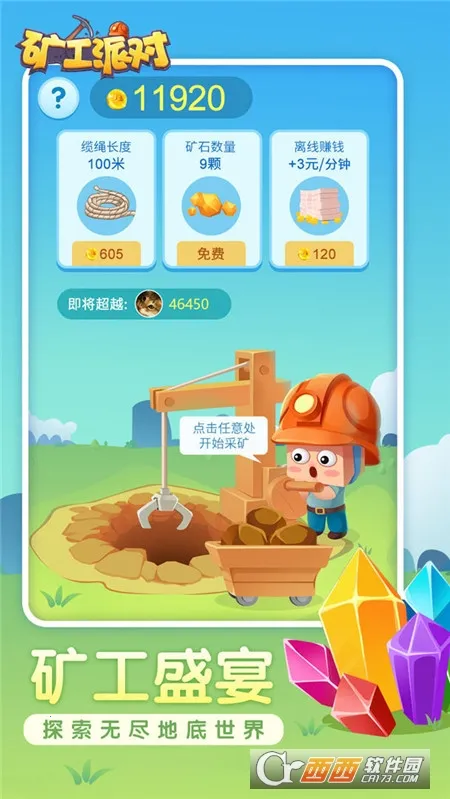 矿工派对2025是款模拟游戏,玩家化身矿工比拼产量。玩法简单,内存小、画风简约,单局时间短。有资源之海,滑动控动作自动挖矿石,满车换金币,能通过活动享乐趣,无上手门槛。