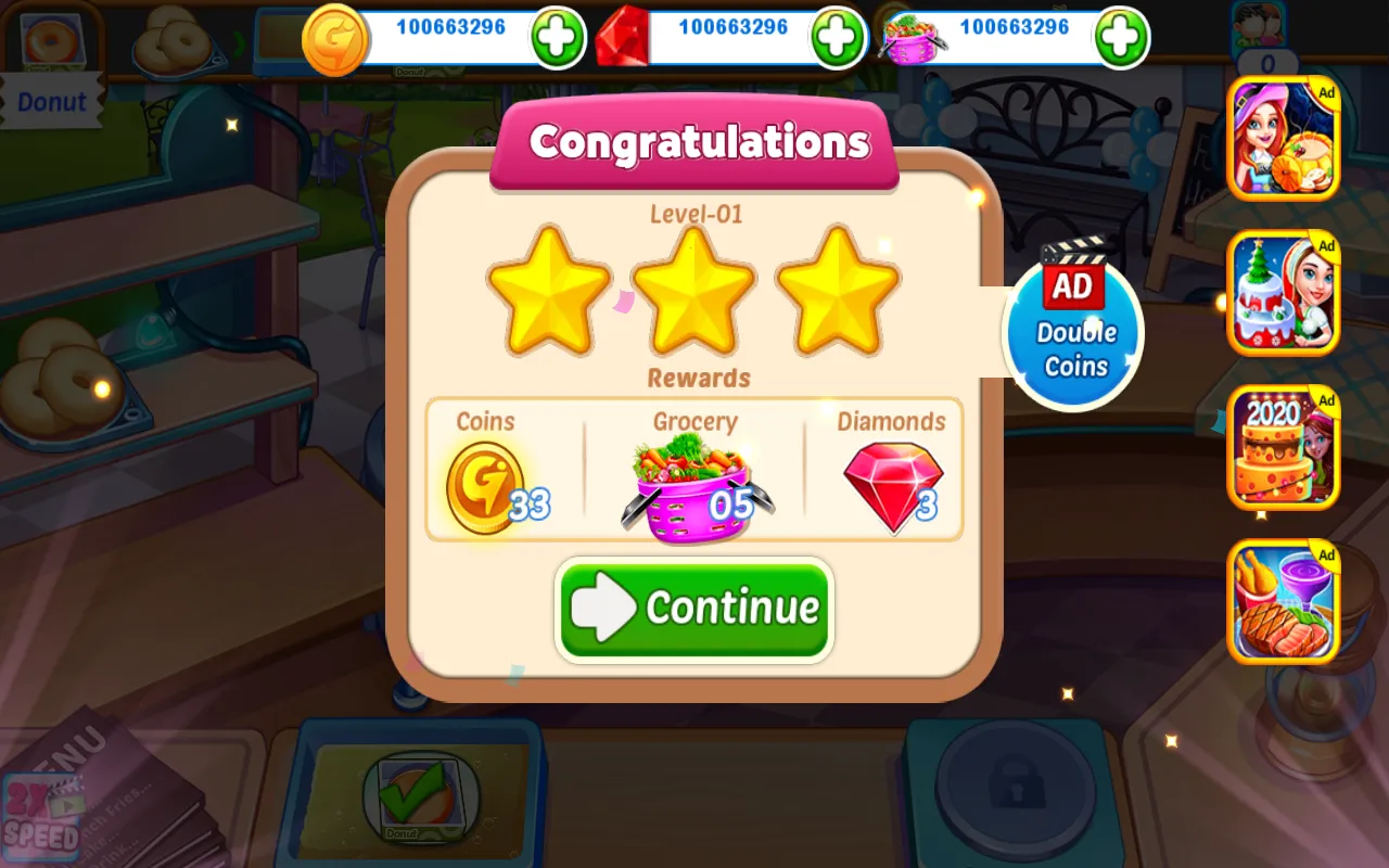 1. 即使玩家下线,餐厅也会继续运转,为玩家提供收入,登录后可获得相应奖励。