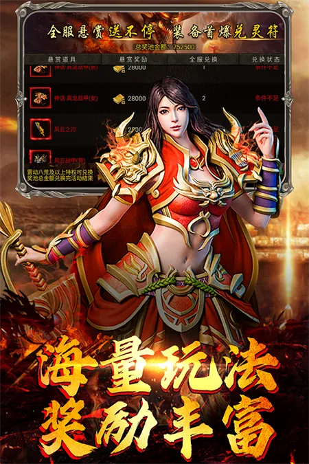 1、丰富玩法,创新加入战神召唤等玩法,还有丰富BOSS地图、龙之争霸、野外PK、装备回收等,单职业技能丰富,操作简单。