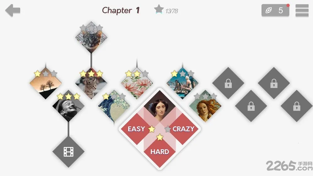 2. 关卡丰富多样,由知名艺术作品做成动画,难度逐渐提升,极具挑战性。