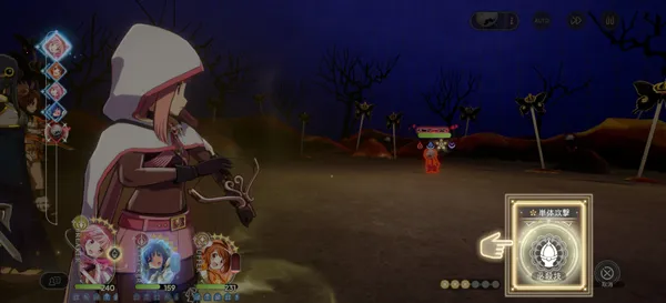 2. 战斗采用回合制策略,操作单纯,通过消耗 SP 施展战斗技能,MP 蓄满发动必杀技。关键在于魔法少女的职位及敌人的崩防量表,有多种职位特性,合理编组队伍很重要。