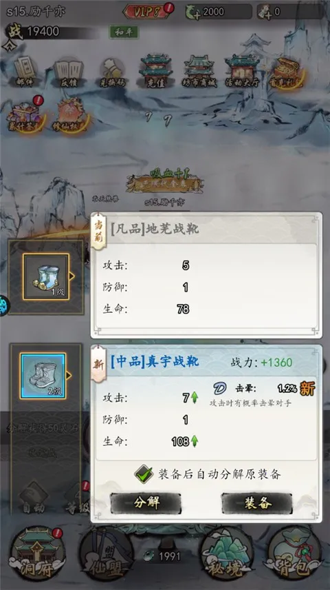 3. 精心锻造装备,不仅提升实力,更是境界突破的关键,随着境界提升,精彩玩法不断开启。