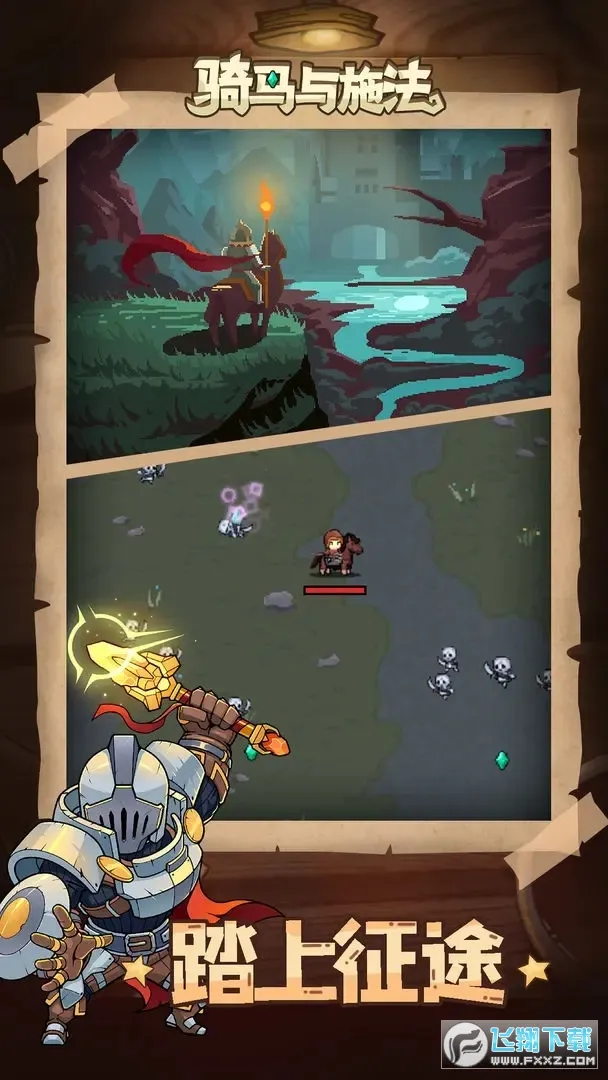 骑马与施法是一款像素风割草生存游戏,玩家扮演骑士法师骑马探索世界,用魔法与剑战斗。可消灭怪物升级,自由组合技能属性,收集金币解锁马匹装备,迎战红衣骑士团,还有多种特色等你体验。