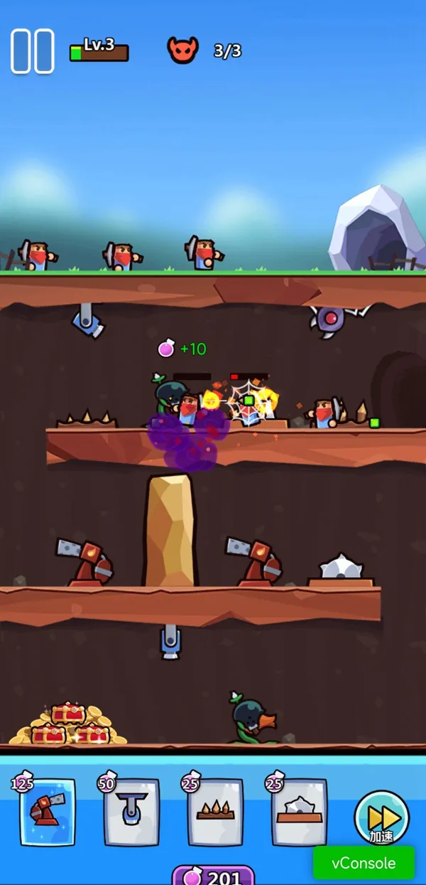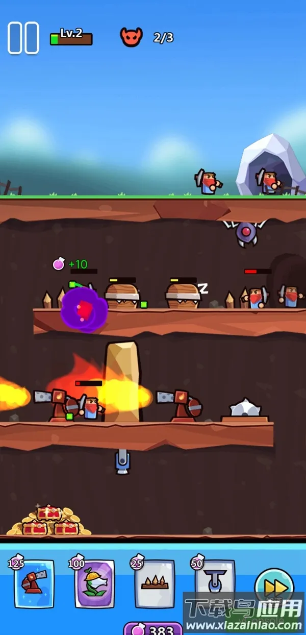 1游戏操作简单,放置机关就能防御,轻松上手。美术风格与系统协调,让人有持续游玩的动力。