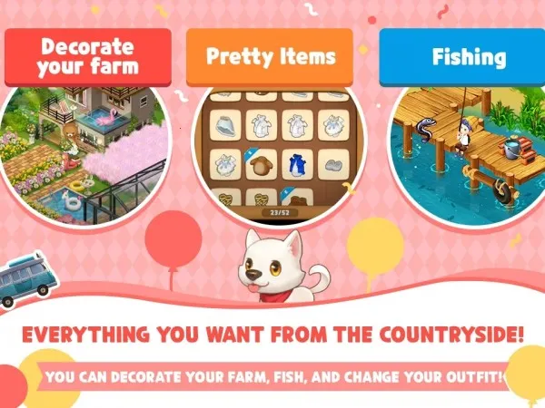 设有可升级建造的牛棚、羊圈、鱼塘及花圃等多个区域,处处充满欢乐,还能招募工人分担农活。