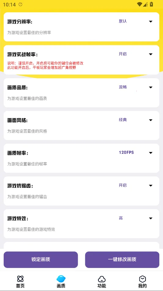 它的功能强大,能自由调整游戏画质,提升到极致,画面超清晰细腻。即便硬件配置低的手机也能运行,不占内存,不影响游戏体验。可自由调节帧率和画质,享受流畅游戏,战斗不卡顿。支持调整帧率、分辨率等参数,提升画面清晰度。利用动态内存注入技术避开安全检测,优化运行效率,还能实时预览美化包效果。