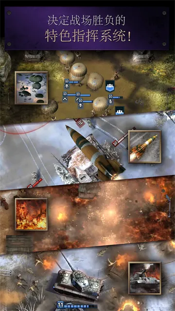 - 4、多种特色指挥策略,如支援战略、空降战略、要塞化策略、突击策略等,为战斗增添更多变数。