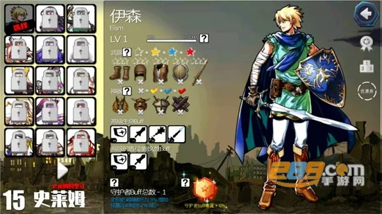 2. 每位史莱姆角色可切换操控,全力阻止敌人越线,还有守护者提供不同祝福,升级需兼顾武器与守护者。
