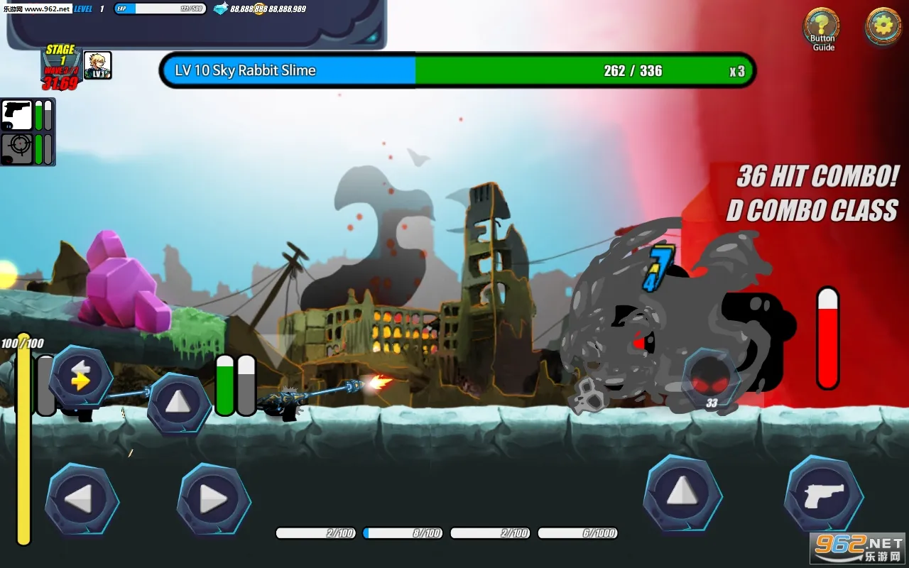 3. 游戏玩法多样,如冲刺、跳跃、切换手枪史莱姆、激活狂暴模式等,支援技能可通过攻击充能。