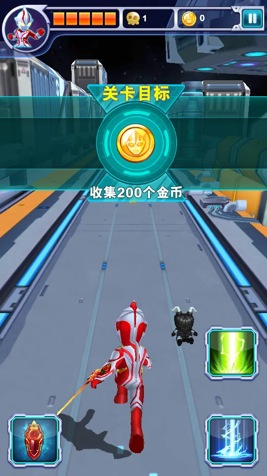 采用全3D动态视角跑酷机制,在星际轨道、城市天际线、火山裂谷甚至月球表面高速奔袭,灵活闪避障碍,真正实现在宇宙中自由奔跑的奥特曼式体验。