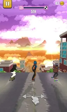 1. 操作简单易上手,左右滑动控制方向,长按加速冲刺,松开触发跳跃,轻松开启滑板之旅。