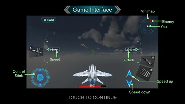 4. 亮点突出,操作战斗机可磨练飞行技术,在合适时机反击给予敌人致命一击,新手指导能助玩家快速上手。