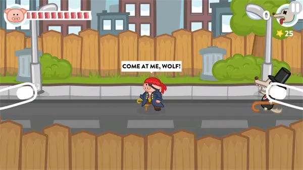 2. 玩法简单粗暴,玩家控制小猪与狼群展开殊死搏斗,可利用攻击、跳跃、下蹲打出多种组合套路,打击感爆棚。