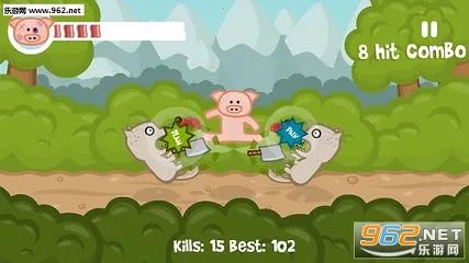 2. 游戏画风清新养眼,玩法简单粗暴,玩家控制小猪与狼群殊死搏斗,能打出多种组合套路,打击感爆棚。