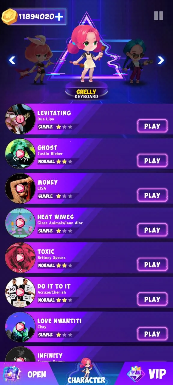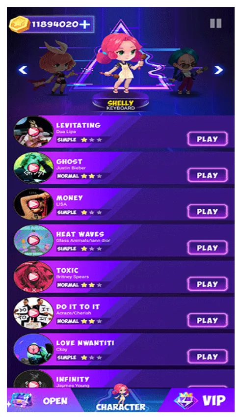 2. 多样角色选择:可解锁不同风格角色,每个角色都有专属特效和技能,如双倍积分、节奏判定放宽等。