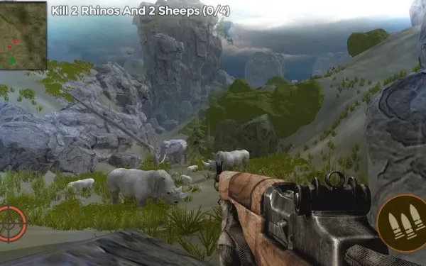 2. 操作简单易上手,使用狙击步枪观察瞄准目标即可,任务挑战多样,不同难度猎物增添乐趣。
