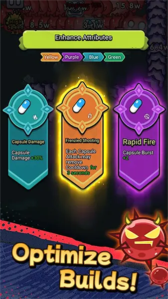 3. 游戏角色和技能丰富,拥有多种独特细胞角色,每个角色有不同技能和属性。