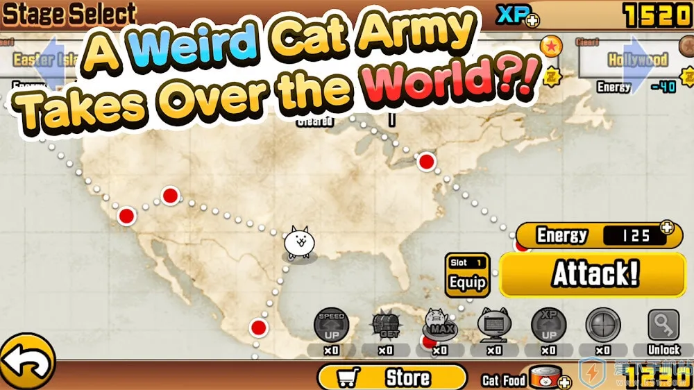 喵星人大战破解版是一款风靡全球的恶搞策略塔防单机游戏。融合塔防、卡牌收集与角色养成,有109只风格迥异猫咪,操作极简,暴漫画风,关卡丰富,节奏明快,随时开局暂停,正版由PONOS开发。