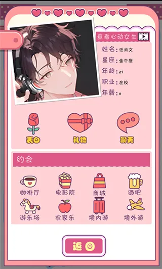 3. 自由选择角色,能与喜欢的角色进行情感交互,决定自己的恋爱走向。