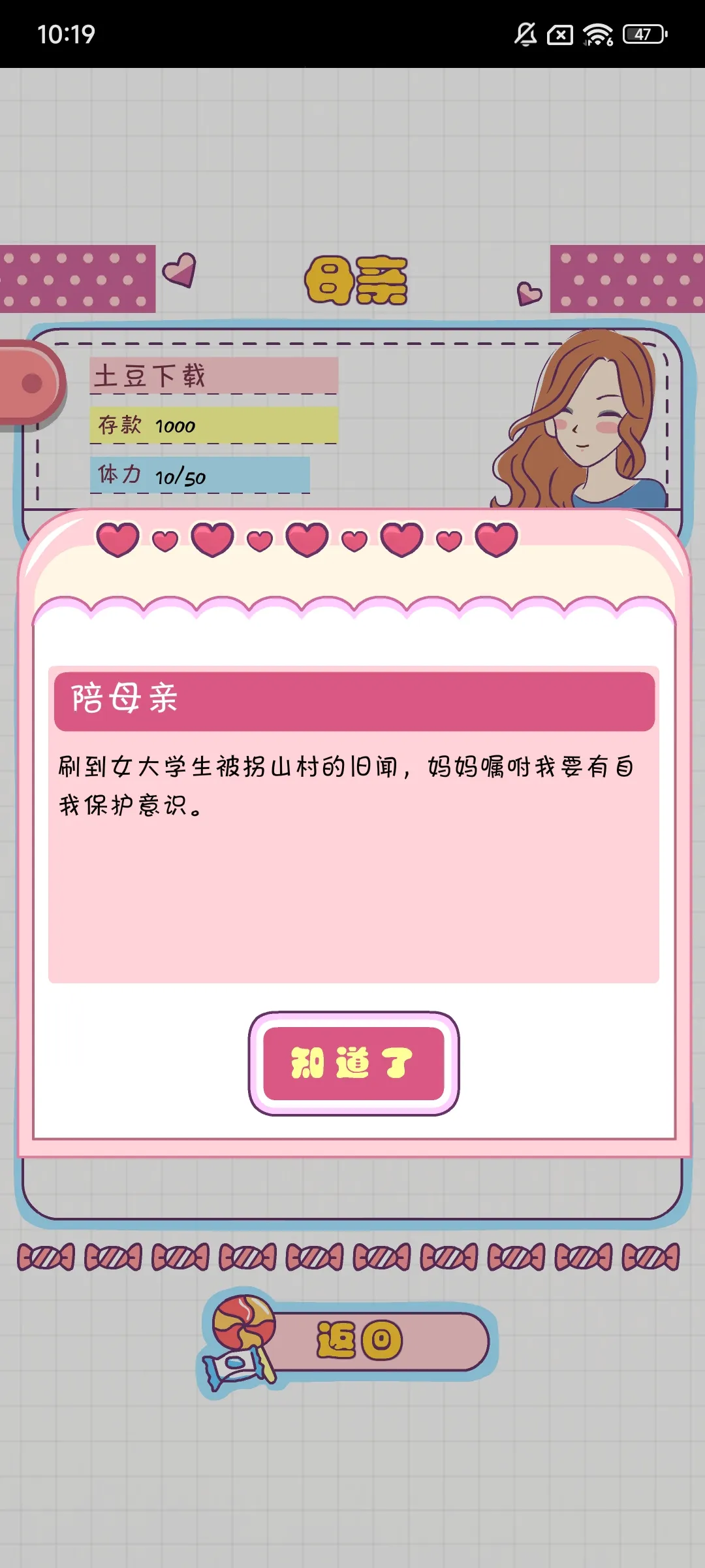 想知道恋爱模拟器怎么玩吗?这款游戏能满足你的恋爱模拟需求。它可以让你扮演虚构角色,与其他角色进行情感交互,通过各种学习、打工、投资事件丰富人生,体验真实都市生活。游戏真实还原各种生活场景,约会细节一一呈现,每次选择都会影响约会进度。玩法有趣,能通过各种玩法加深两人感情。比如可以定制心仪对象,和她一起生活,给她换装,在家温馨约会,还能一起泡澡等。这里还有约会攻略,像长时拥抱能让人暂时忘却外界,留下小字条能改变对方心情,对每件事表达感激能巩固爱情,为对方做力所能及之事能让生活更轻松,适时停下忙碌陪伴对方,告诉对方爱她的原因能让感情升温。通过这些攻略,助你在游戏中顺利成为优秀男友,体验不一样的恋爱,快来下载试试吧!
