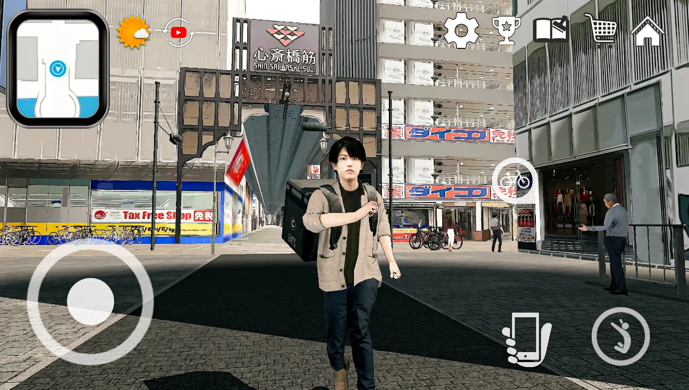 游戏场景高度还原大阪真实街区风貌,从繁华商圈到居民小巷均细致呈现,带来沉浸式虚拟旅行体验,让玩家仿佛置身大阪街头送外卖。