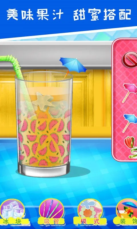 4. 可自由选择果汁和牛奶口味,用色彩缤纷的吸管和装饰品美化饮品。