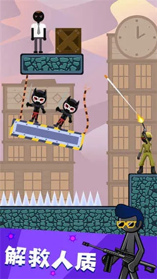 想知道火柴人枪战射击怎么玩?这款游戏超有趣!它是节奏明快的射击闯关游戏。你将操控简约却表现力十足的火柴人,在27个精心设计的关卡里,用有限子弹智取强敌。能借助地形掩体触发机关陷阱,利用子弹反弹机制,巧用环境道具,完成精彩击杀。支持实时联机对战,可1v1竞技或组队协作挑战防御战。通关能解锁新武器、皮肤与战术。游戏特色丰富,线上多人实时竞技,全球排行榜与成就系统见证成长,火柴人可高度自由定制,还有流畅卡通视觉体验和全系武器库。玩法上,点击主界面开始闯关,进入关卡长按瞄准松手射击,每关初始子弹有限,部分敌人需触发机关消灭,高级关卡有子弹反弹机制。操作门槛低但精通有深度,快来体验吧!