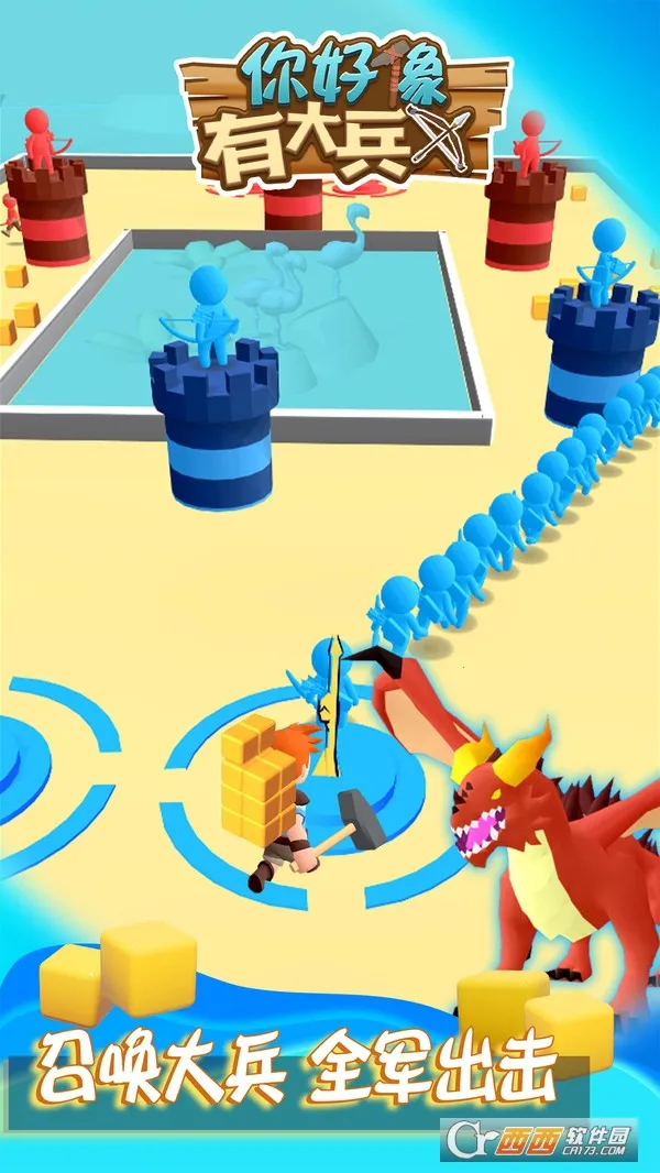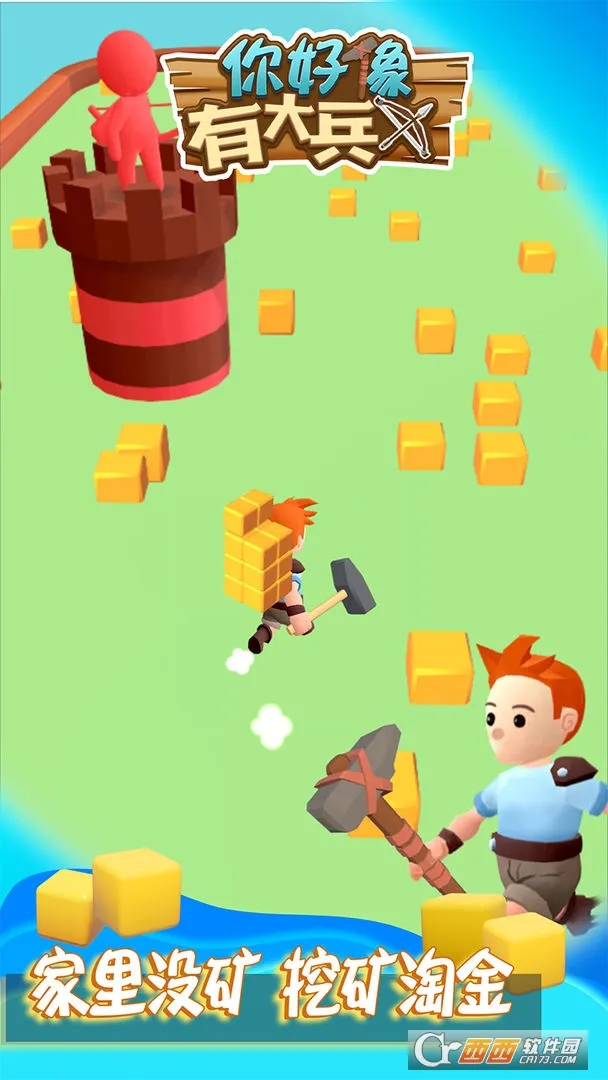 你好像有大兵是一款像素方块人造型的休闲手游,有卡通画风与立体场景。玩家指挥士兵组阵容冒险,通过挖矿收集资源、招募士兵,还有多样关卡、宠物等,玩法丰富易上手。