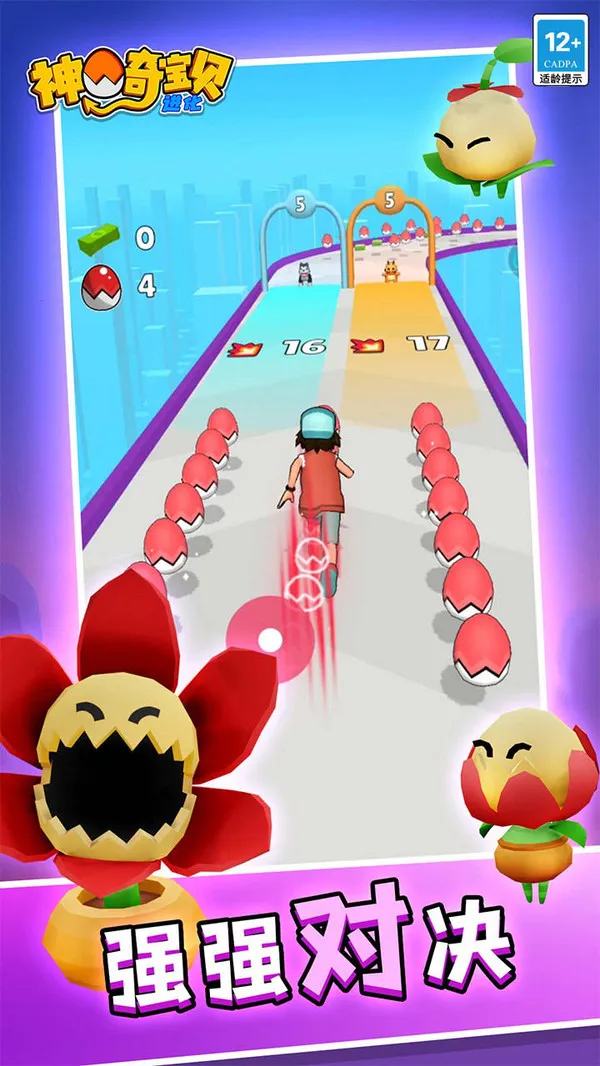 想体验草系神奇宝贝进化的乐趣吗?来试试这款宝可梦主题跑酷游戏吧!在游戏里,你将操控角色在多彩赛道上奔跑,不断前进。沿途会遇到各种障碍与挑战,需要灵活控制角色避开。同时,要收集关键道具,这些道具能助力你的草系神奇宝贝完成形态进化,解锁更强能力。游戏玩法丰富多样,有众多小精灵的经典技能被还原并巧妙融入其中,让体验格外充实。路上还会出现特殊道具,拿到后能暂时提升移动速度或进入无敌状态,记得尽量收集。而且要注意,碰到小型精灵会损失生命值,所以得小心避开它们。以训练师的身份加入跑酷队伍,收集各种神奇宝贝,通过不断培养和进化,在终点参与最终对决,争夺最强训练师的荣誉。快来开启这场别开生面的冒险旅程吧!