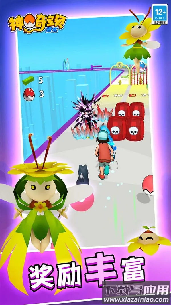 这是一款宝可梦主题跑酷游戏,操控角色在多彩赛道前进,收集道具助神奇宝贝进化。有多种玩法模式,能还原小精灵技能,还有特殊道具,需小心小型精灵,快来体验这场冒险。
