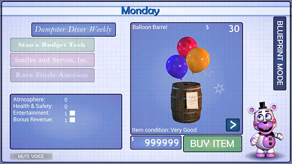 2、游戏趣味性十足,每个夜晚气氛紧张,玩具熊越来越聪明且攻击性变强,还有全新玩法模式可选。