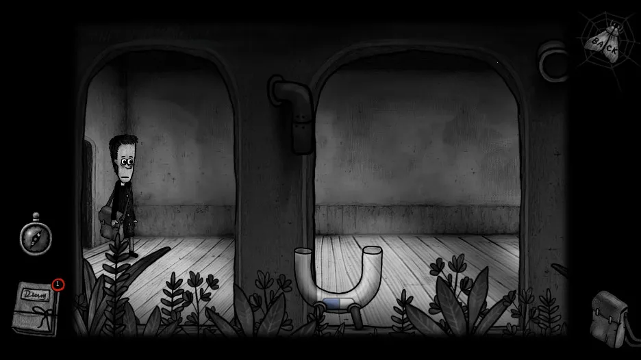 游戏采用独特的黑白手绘美术风格,营造出怪诞而惊悚的氛围,轻松融入其中,能沉浸式体验解谜挑战。