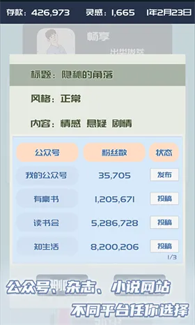 想知道自己的公众号在微信哪里找?来玩这款超有趣的模拟经营游戏“我的公众号”呀!在这里,你能体验当自媒体人的真实生活。开局有3000块钱,通过刷灵感、按趋势写作来赚钱。比如前期先刷灵感,等金钱降到1000左右开始创作,先发布在书刊上增加粉丝。随着游戏进程,金钱增多后可买宠物收集灵感,提升写作能力。还能买房坐等升值,粉丝积累到一定数量就能在公众号发布文章赚更多广告费。游戏玩法丰富,从创作投稿到与粉丝互动都有,能让你感受自媒体行业的不易与乐趣。它有多元养成经营模式,真实还原自媒体流程,兼顾创业与生活元素。快来下载,开启你的自媒体创业之旅,说不定就能轻松找到自己的公众号啦!