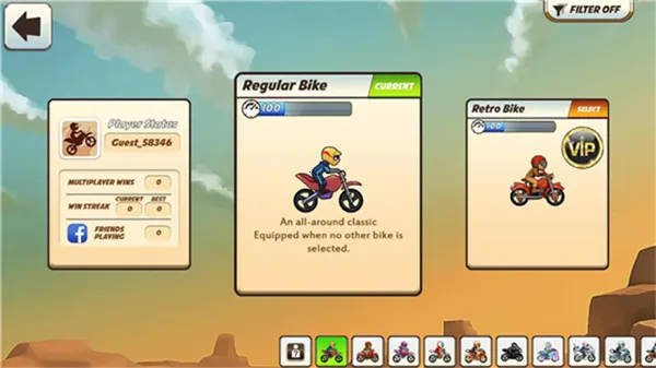 想在摩托车表演赛里畅享无金币限制的体验?这款游戏超合适!它是一款超刺激的横版摩托车赛车闯关游戏。你能驾驶摩托在荒原、冰川、沙漠、绿洲等多样赛道场景中闯关。操作上,用重力感应结合触屏按钮,倾斜手机就能调整摩托姿态,操控感超棒。
