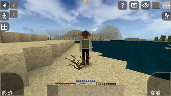 玩法也很简单易懂。启动游戏点击开始,新玩家先创建世界、取名、创建角色。进入游戏后,点击左侧图标查看背包,上方人图标看角色状态,右上角眼睛按钮切换视角。解锁合成表也不难,点击右上角三个点,选带?选项,点击合成谱就能查看合成信息。它还有帽子披风、奖励系统、声效、皮肤编辑器等丰富内容,玩法多样,乐趣无穷,快来下载开启远古冒险吧!