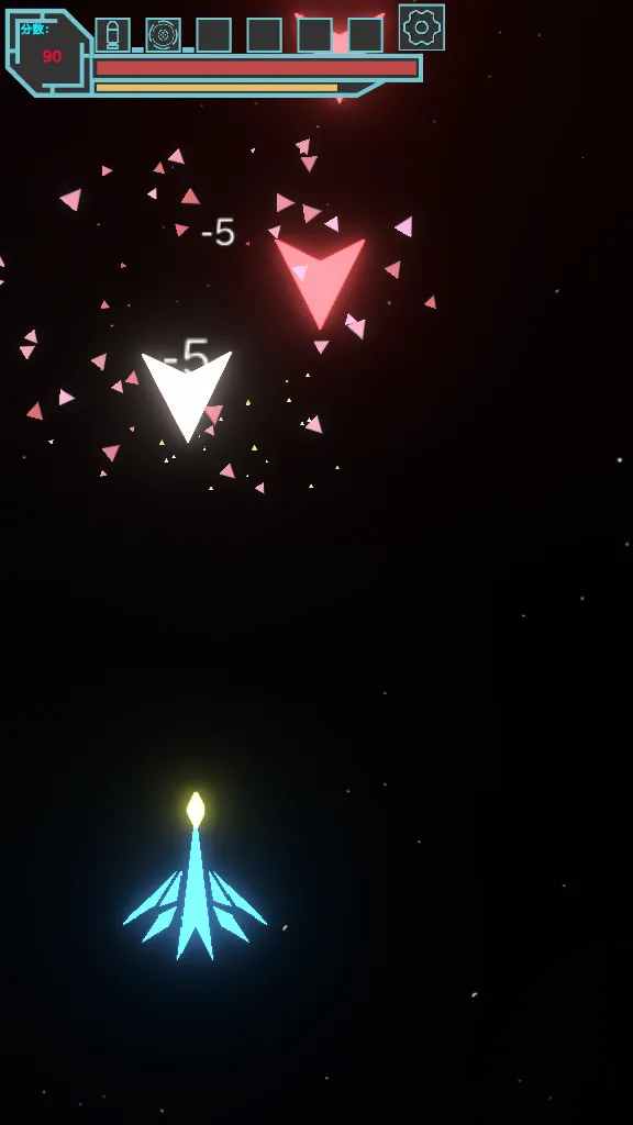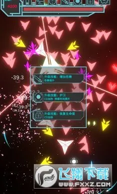 1. 精美细致的场景和炫酷的攻击特效:采用高对比度霓虹美学风格,星空背景与机械敌机交相辉映,特效细腻流畅,全程60帧稳定输出,带来沉浸式科幻空战体验。