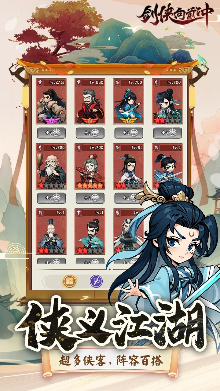 剑侠向前冲是一款武侠主题策略卡牌游戏,新用户登录注册有赠礼,七日签到有额外奖赏。以挂机闯关为核心,可挑选武侠人物、习得招式。还有多种福利及攻略,能体验江湖生活,组建多样阵容。