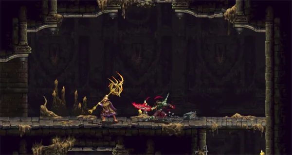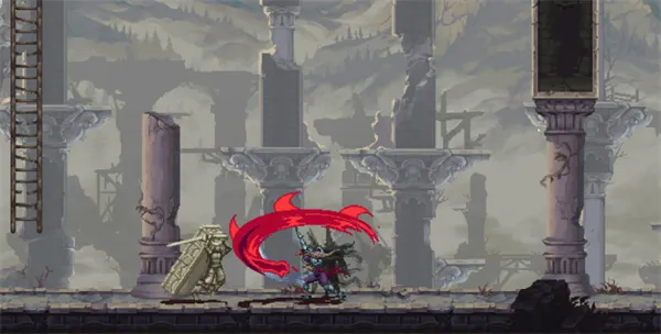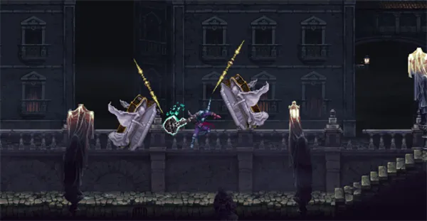3. 手绘像素艺术巅峰,角色动画帧数达24帧秒,场景采用16层视差滚动,像素颗粒感与光影动态结合,哥特美学表现力强。