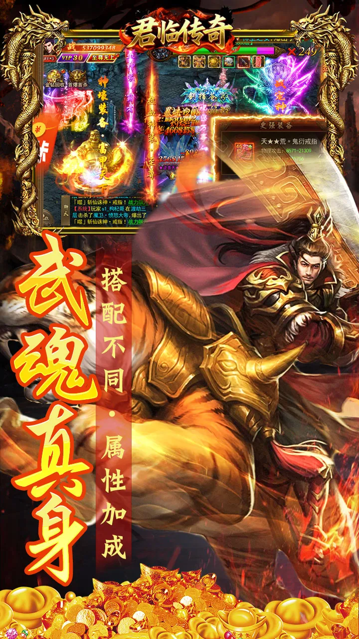 君临传奇玩法丰富,有抢BOSS、实时PK、攻沙等,融合全战斗系统,实现自由PK死亡爆装,每周攻占沙城,呈现正统传奇味道。