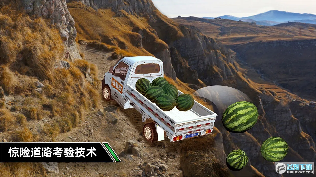 3. 在开放世界环境中驾驶,体验真实大卡车,接取水果、动物、材料等运输任务,注意沿途道路。