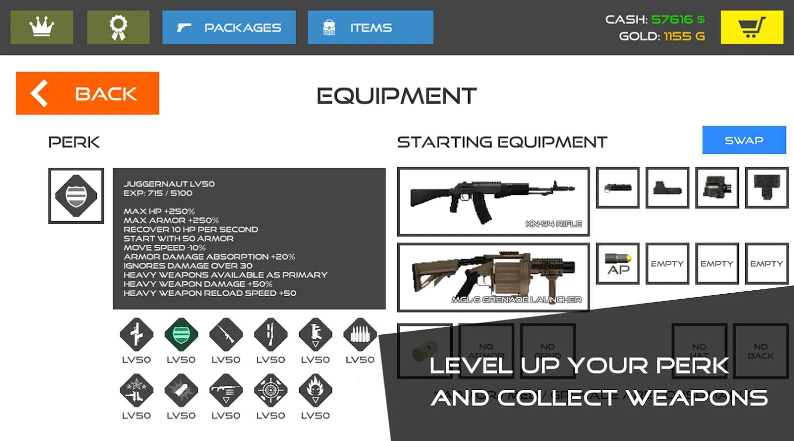 3. 战斗积累资源,解锁升级武器,全方位塑造王牌战士。