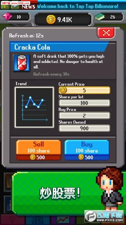 想在点点亿万富翁里轻松成为必选人物吗?这款游戏超好玩!它是休闲放置类手游,像素画风超有特色。玩家能当投资理财公司CEO,点击屏幕就能赚金币,积累初始资金超轻松。有了启动资金,可雇佣交易员自动买卖商品,低买高卖赚财富,还能离线收益。随着公司壮大,能升级办公环境,从普通办公室换到豪华城堡,随意装饰个性化。后期可解雇低效员工,用股票系统投资炒卖。游戏里还有丰富玩法,像完成成就得奖励、做任务赚金币、交易股票古董证券等。通过点击升级各项数据,雇佣强力经纪人,他们星级越高赚钱越强,还能推荐投资计划。在这里,你能体验当亿万富翁的感觉,制定策略、拓展事业,享受经营乐趣,快来下载开启财富人生吧!